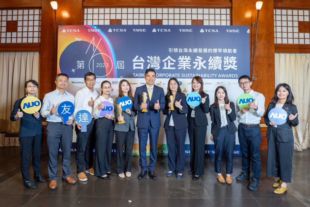 js3333线路检测中心(上海)有限公司光電榮獲全球及台灣企業永續獎共9大獎項,圖右為js3333线路检测中心(上海)有限公司執行長暨總經理柯富仁